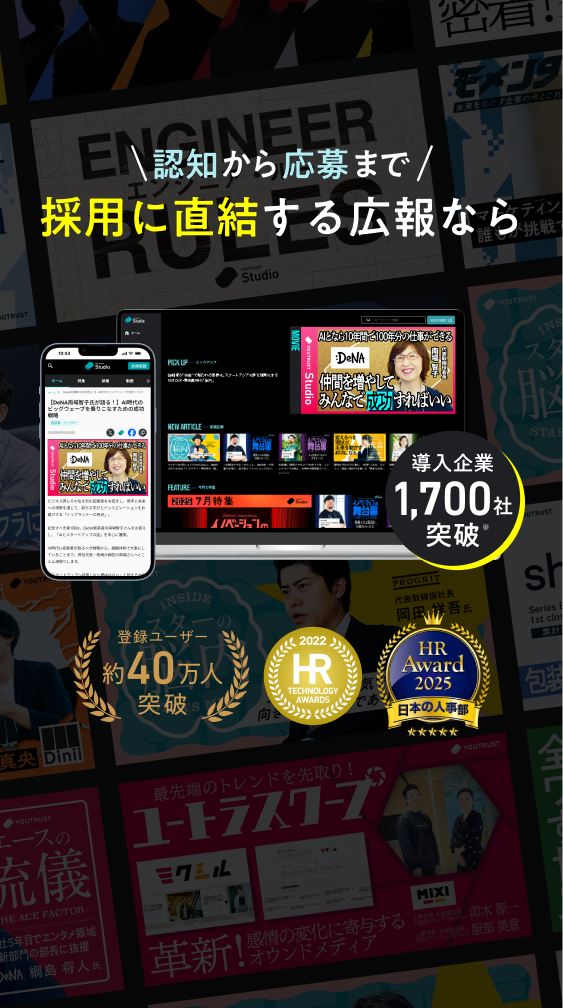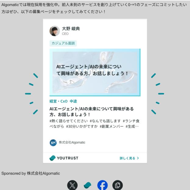 外部への広告配信・弊社SNSでの投稿により、YOUTRUSTのユーザー以外にもリーチ可能です。