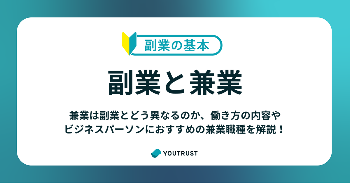 キャリアSNS「YOUTRUST」では、あなたのスキルや経験を活かせる副業の募集がきっと見つかります。まずはYOUTRUST上にプロフィールを登録して、あなたのキャリアの可能性を広げるチャンスを探してみてください。