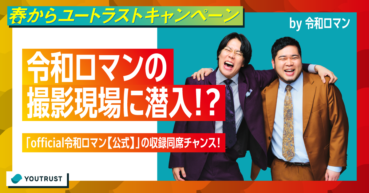 「official令和ロマン【公式】」の収録に潜入できる!?YOUTRUST会員限定、抽選で3名様に収録現場に同席いただけます。