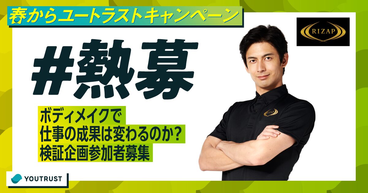 RIZAPでのボディメイクが、「仕事のマインドやパフォーマンス」にも変化をもたらすのかをリアル検証!パーソナルトレーニング+食事指導を受けていただける企画です。