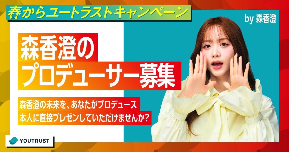 森香澄の未来をあなたがプロデュース!?森香澄さんの未来をプロデュースしてくれるプレゼンの参加者を募集します。選ばれた方には直接ご本人にプレゼンをしていただきます。