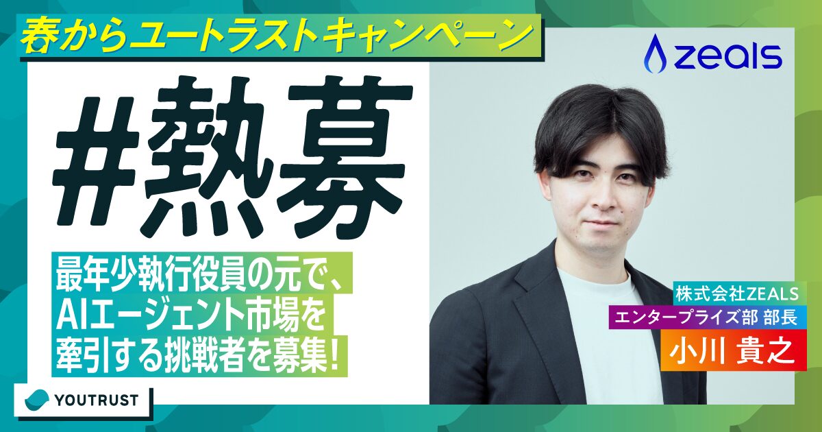 ZEALSは、AIエージェントサービスを通じて、真にパーソナライズされた会話体験を実現しています。25歳で執行役員に就任した小川が率いるチームで一緒に働きませんか?