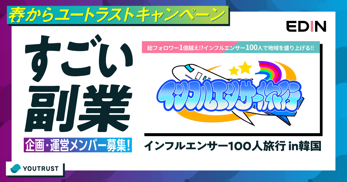 企画、キャスティング、PRなど、2026年末に開催予定の「インフルエンサー100人旅行 in韓国」を手伝ってくれる人を募集します!