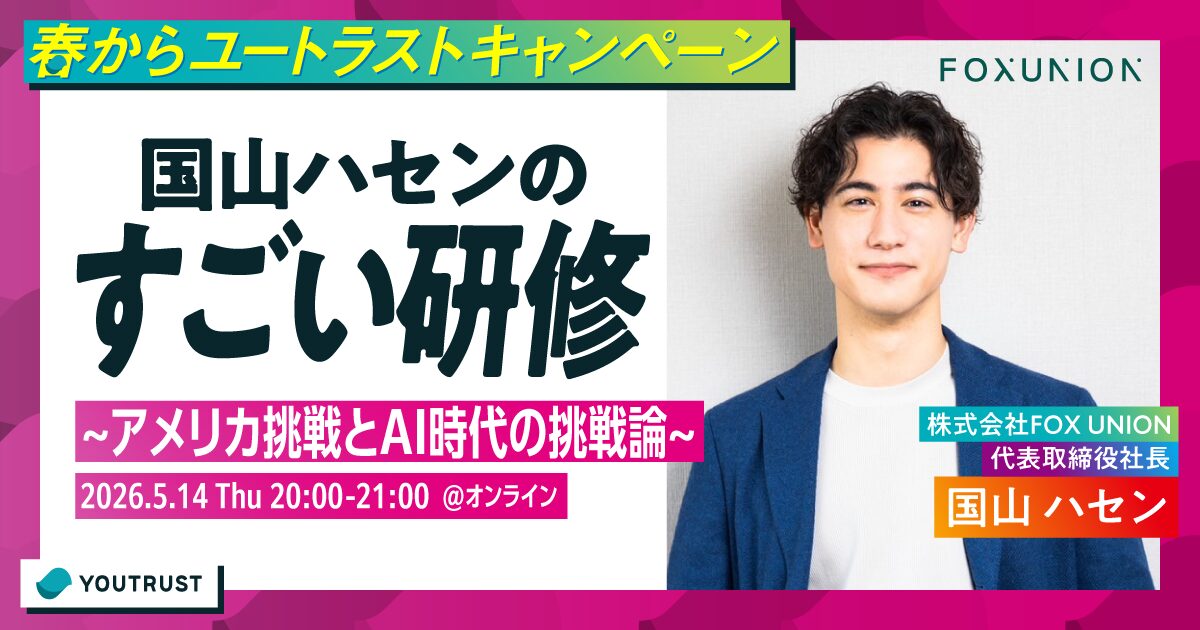 アメリカで挑戦を続ける元TBSアナウンサー国山ハセンさんが、後悔のない選択の作り方とAI時代に必要な情報・コミュニケーション論を語る無料オンラインセミナーです。