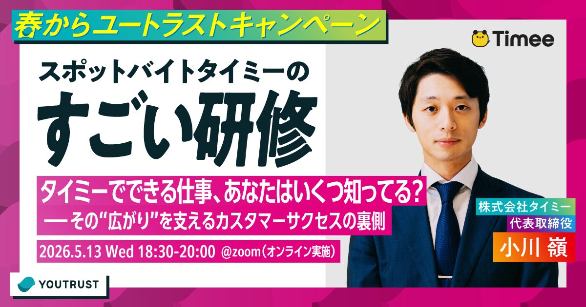 タイミーでできる仕事、あなたはいくつ知っていますか?その“広がり”を支えるカスタマーサクセスの裏側をセミナー形式でお伝えします。
