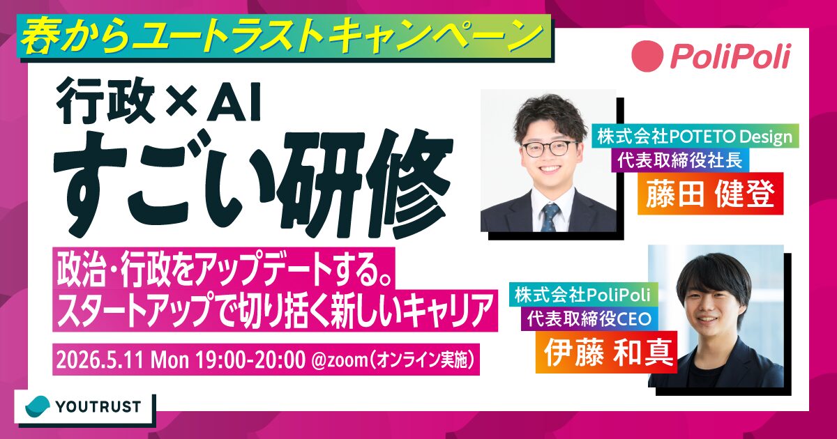 なぜ政治・行政領域で起業し、スタートアップとして挑むのか?そしてAIやデータを使ってどう事業をブーストしていくのか?最前線で挑戦する起業家二人が語ります。