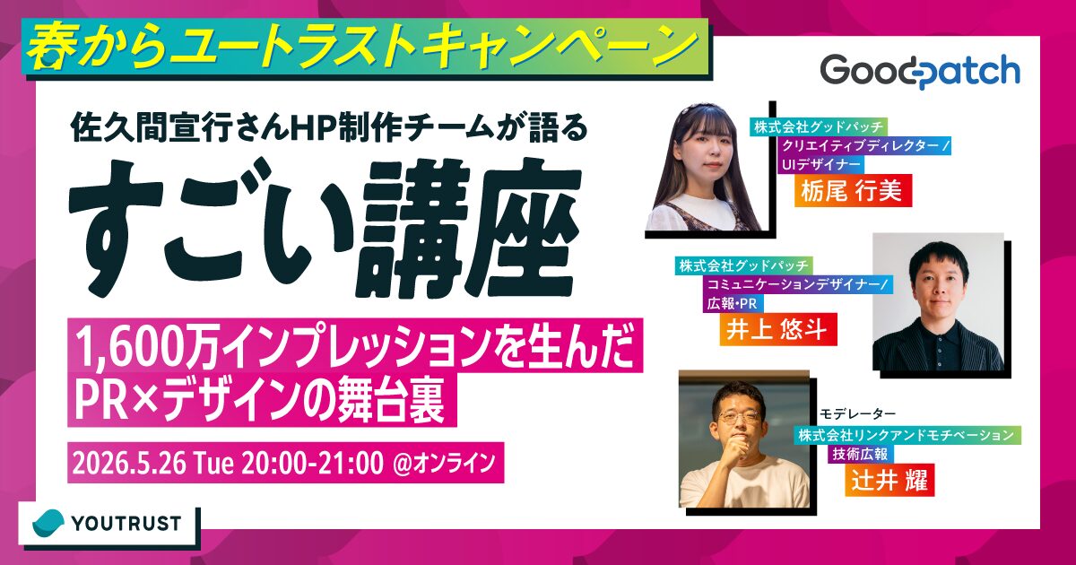 「自社のPR企画なのに、佐久間宣行さんのHPを作る」1600万インプレッション、YouTube55万再生を生んだ、PR×デザインの舞台裏を語るオンラインセミナーです。