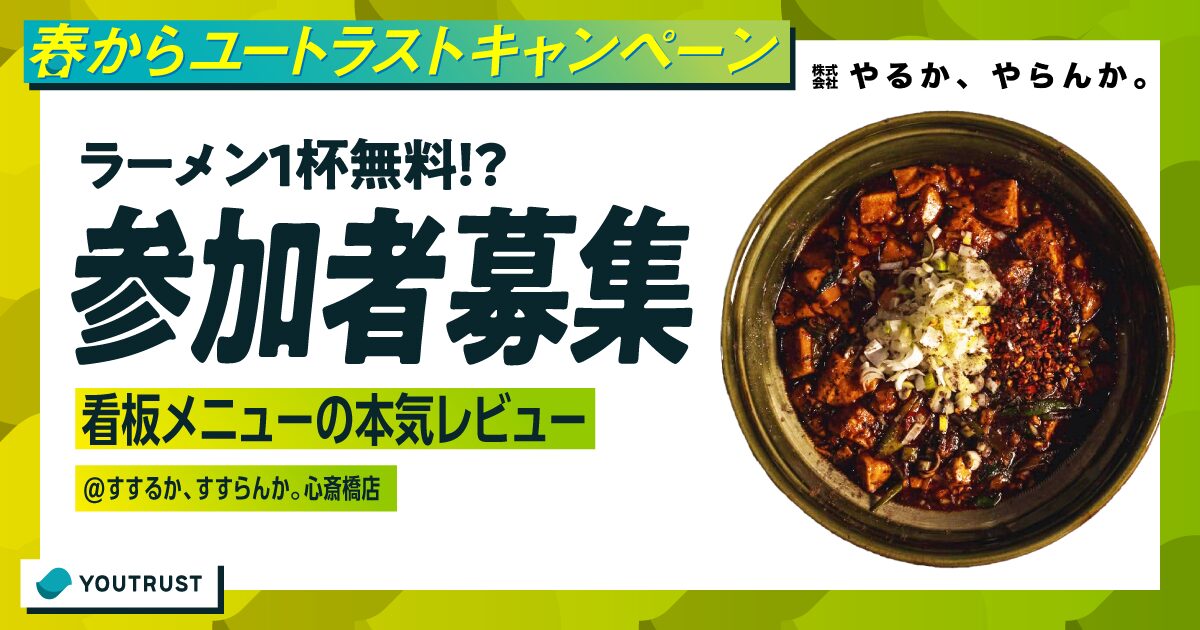 「すするか、すすらんか。」は大阪・奈良に店舗を構える麻婆豆腐ラーメン専門店です。看板メニューの「麻婆豆腐ラーメン」を、本気のレビューをしてくれる人を探しています