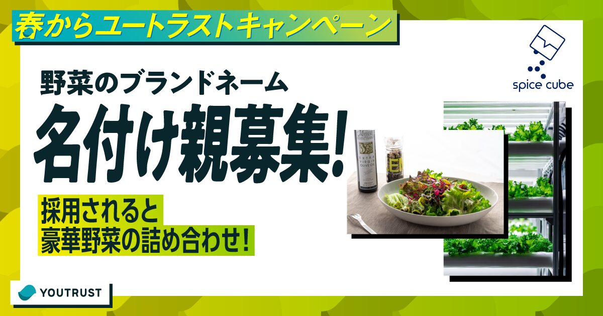 スパイスキューブは、「世界中どこでも農業を実現する」をテーマに小さな植物工場を開発する新しいサービスを提供しています。作った野菜の名付け親には抽選で豪華詰め合わせが!