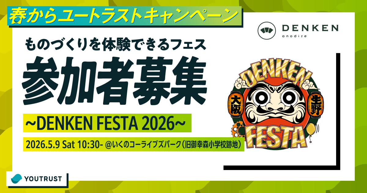 「DENKEN FESTA 2026」は、ものづくりを通じてつくり手の次の挑戦につながる出会いを創出する体験型イベントです。特別特典で、500円の有料体験が無料に!