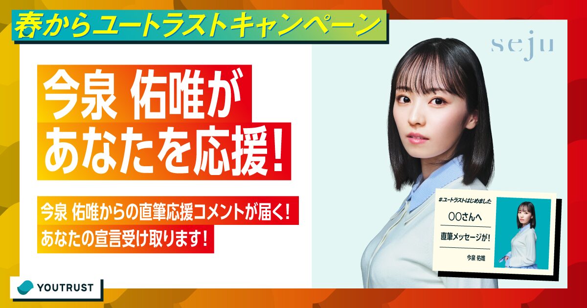 あなたがこれから挑戦したいことや、心に秘めた決意を表明しよう!限定で5名の方に、今泉 佑唯からの直筆応援コメントが届きます。皆さんの応募をお待ちしております!