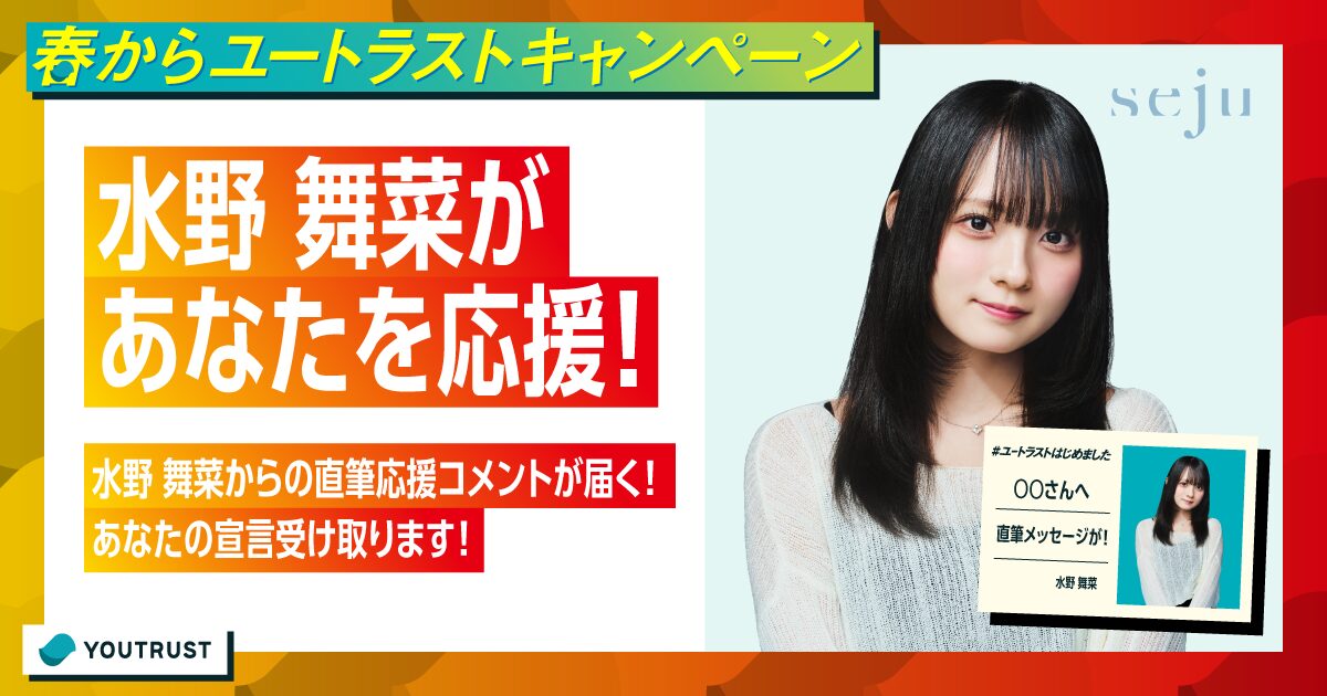 あなたがこれから挑戦したいことや、心に秘めた決意を表明しよう!限定で5名の方に、水野舞菜からの直筆応援コメントが届きます。皆さんの応募をお待ちしております!
