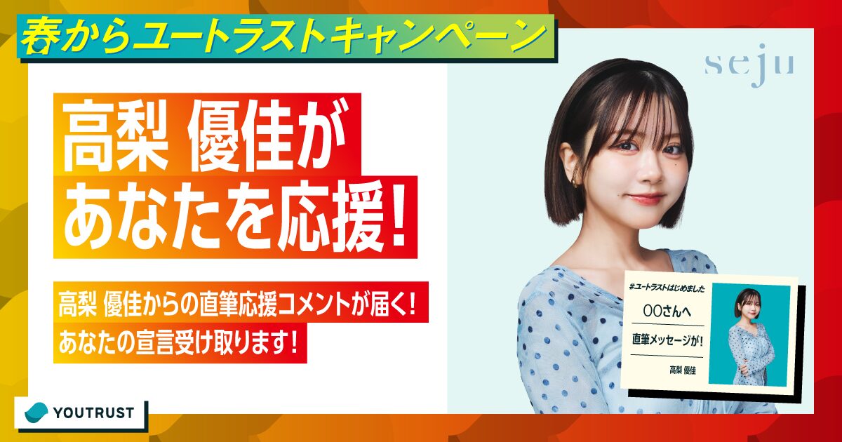 あなたがこれから挑戦したいことや、心に秘めた決意を表明しよう!限定で5名の方に、高梨 優佳からの直筆応援コメントが届きます。皆さんの応募をお待ちしております!