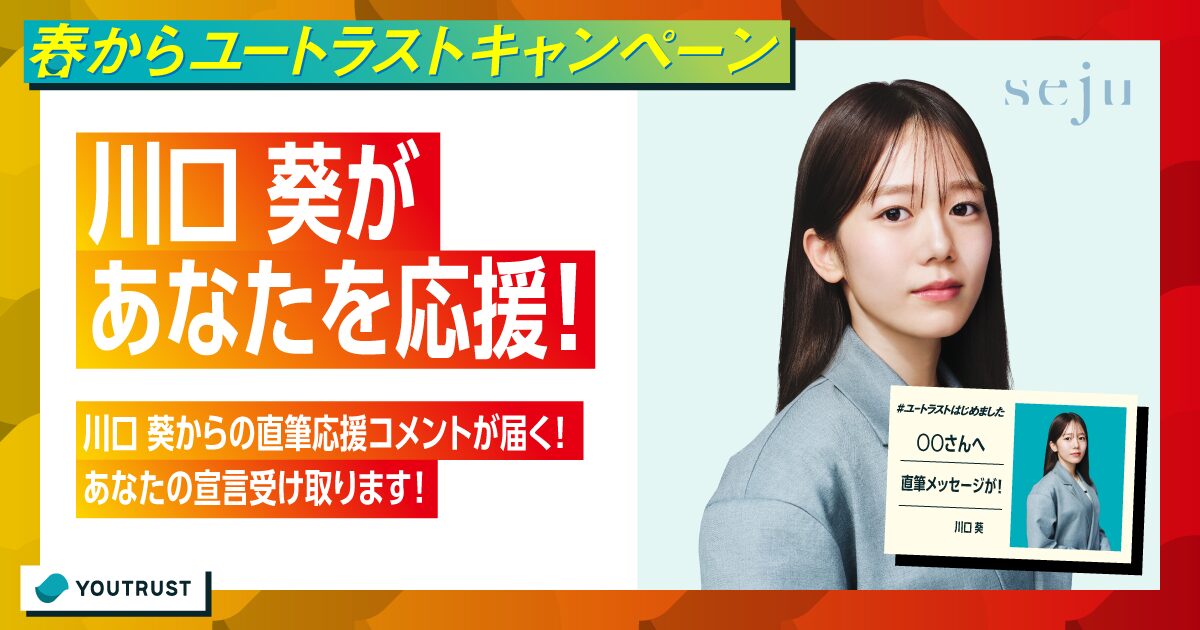 あなたがこれから挑戦したいことや、心に秘めた決意を表明しよう!限定で5名の方に、川口 葵からの直筆応援コメントが届きます。皆さんの応募をお待ちしております!
