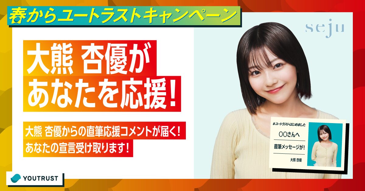 あなたがこれから挑戦したいことや、心に秘めた決意を表明しよう!限定で5名の方に、大熊 杏優からの直筆応援コメントが届きます。皆さんの応募をお待ちしております!