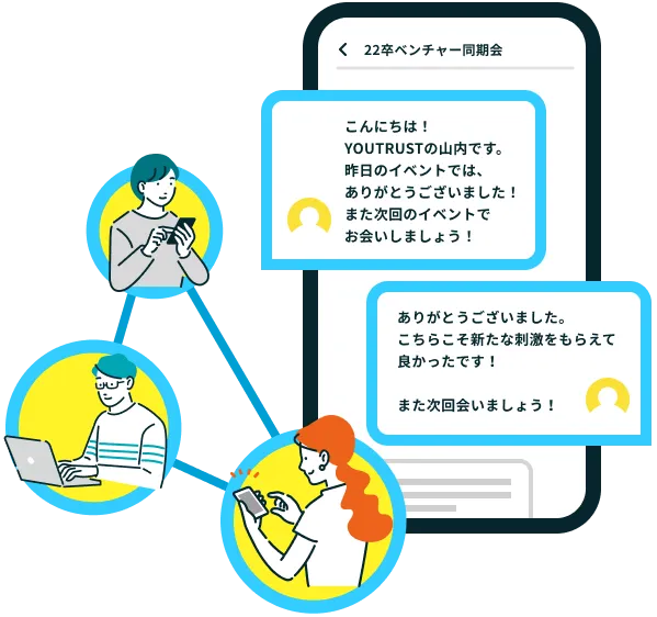 YOUTRUSTは実名・実経歴での登録が前提のSNSです。そのため、コミュニティのメンバーも現職や職歴が確認できる信頼性の高い方が集まっています。匿名SNSのコミュニティと異なり、安心して本音で情報交換・交流できる点が多くの方に選ばれている理由です。