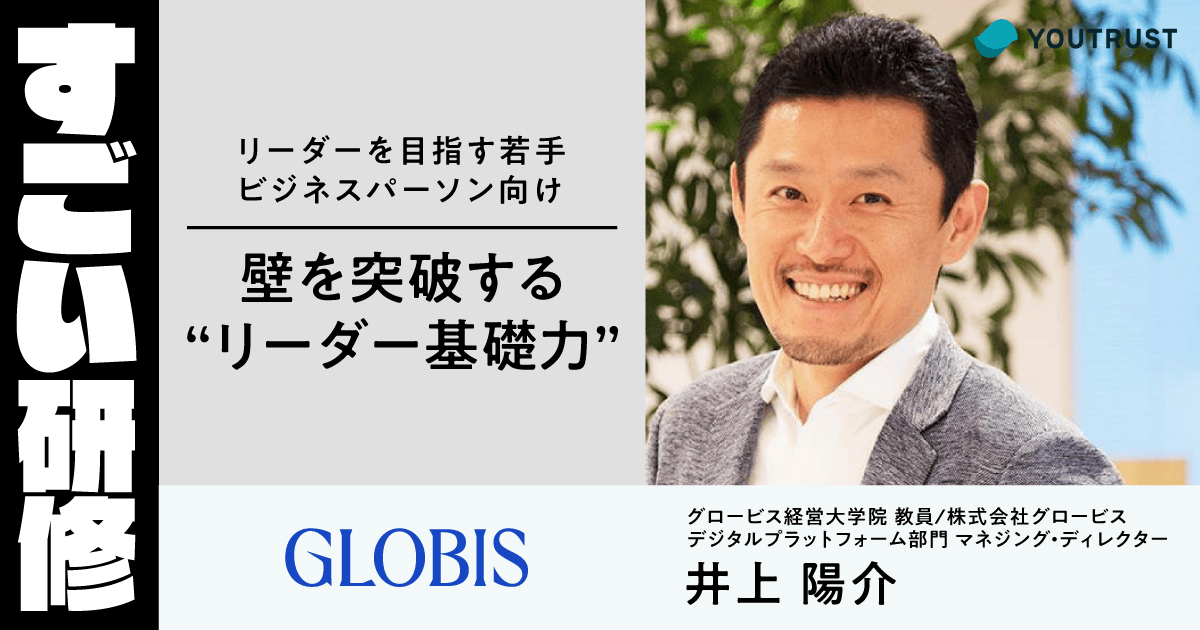 グロービスの井上 陽介さまをお招きし、リーダーを目指す若手ビジネスパーソン向け:「壁を突破する”リーダー基礎力“」セッションを開催いたします。