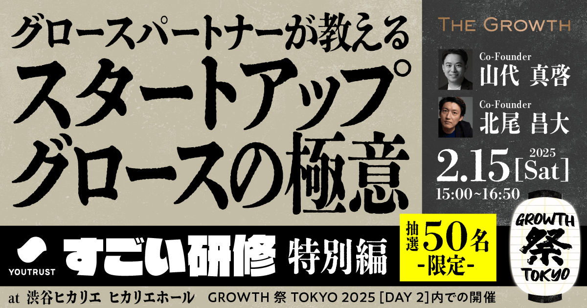 「GROWTH 祭 TOKYO 2025」内にて、「すごい研修 “特別編” グロースパートナーが教えるスタートアップグロースの極意」を開催いたします。